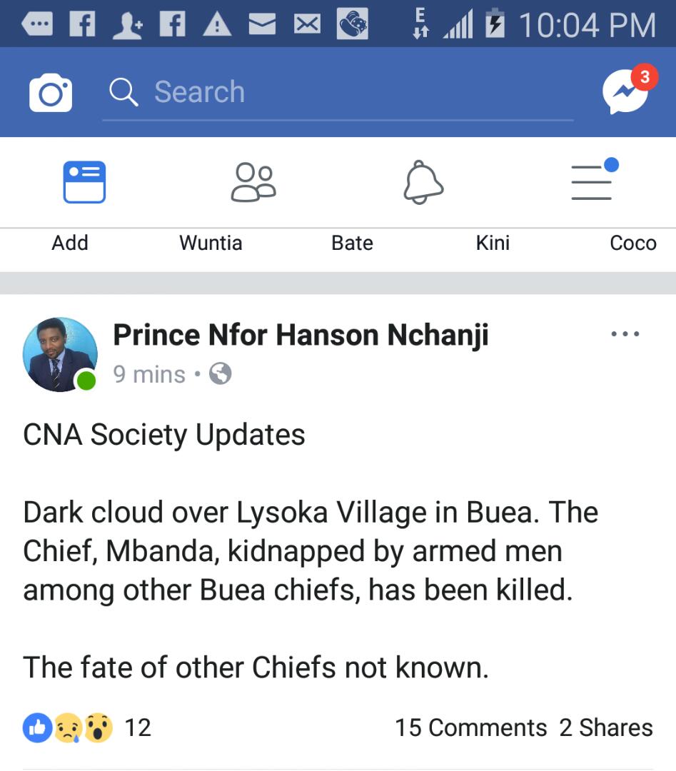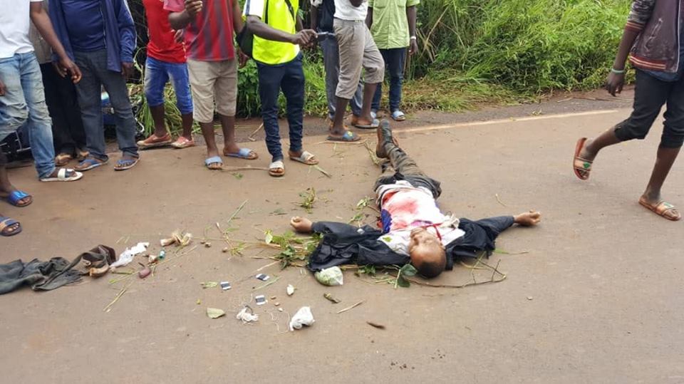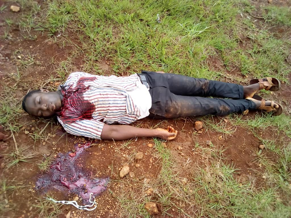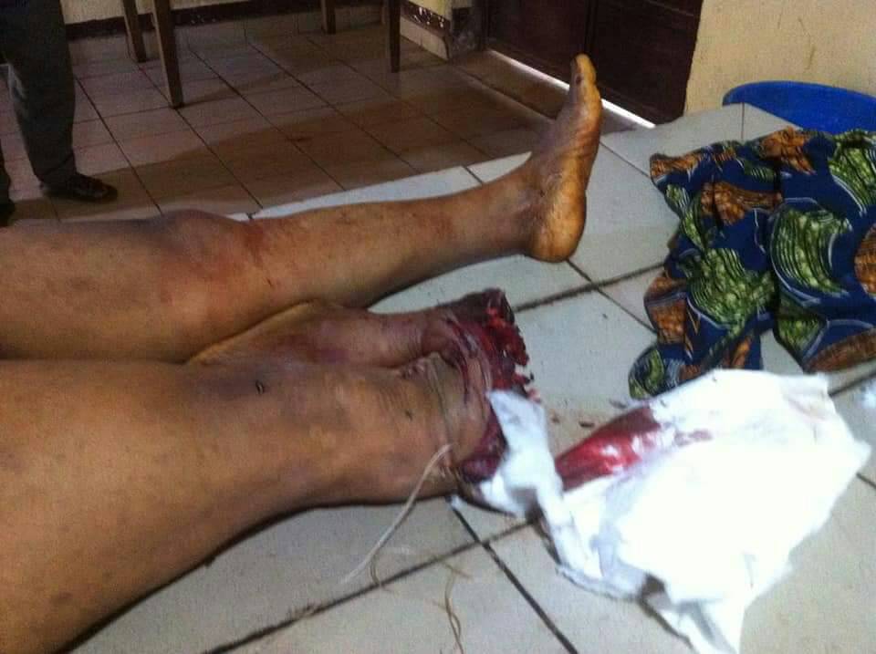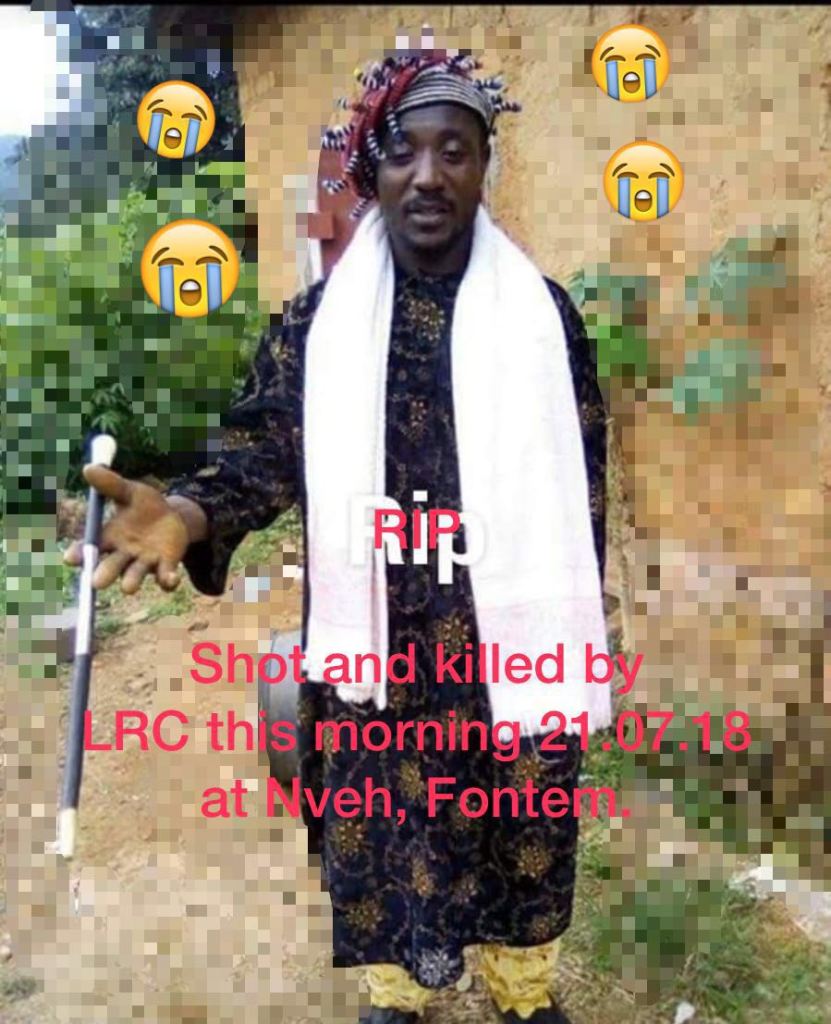 Late Mr. Chiabah Samuel, popularly known for his jovial nature as Sam Soya, Father of 5, was beheaded in Belo in North West British Southern Cameroon on February 3, 2018 by French-Cameroun soldiers, trained and equipped by the U.S government and other Western countries like France. The late Mr. Chiabah, at the time was a handicap on crutches, shot on the knee by the same soldiers during a peaceful demonstration 4 months earlier. In the video arrogantly posted by the military, the late handicap is seen denying the charges leveled against him by his killers. Another tortured victim is equally seen claiming the handicapped Mr. Chiabah was behind a recent murder of a security officer, trump up charges the soft-spoken Mr. Chiabah denied. The fake witness who was later killed unconsciously revealed that the soldiers had already killed some other people. Hear him, “those lying outside…”.