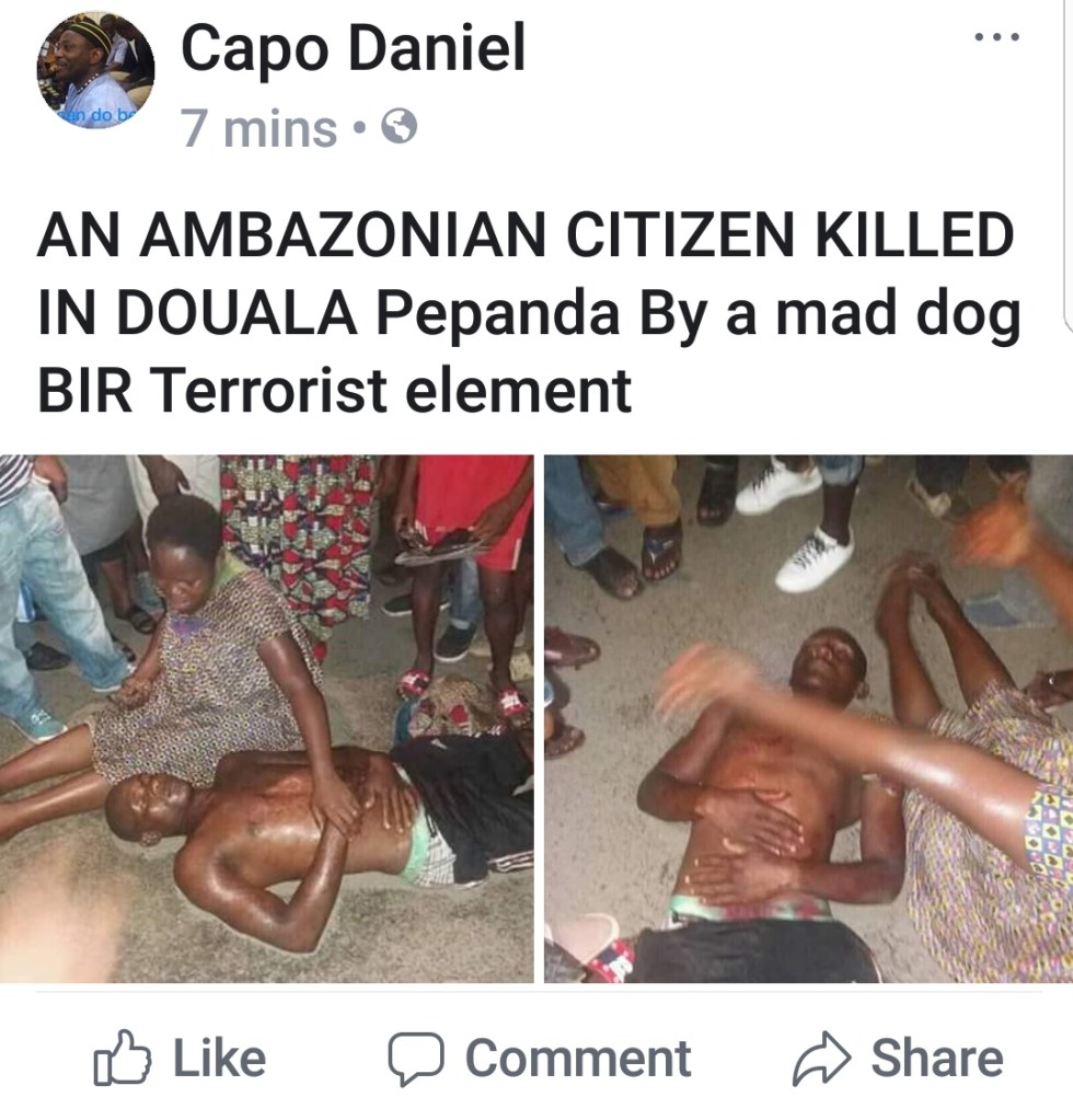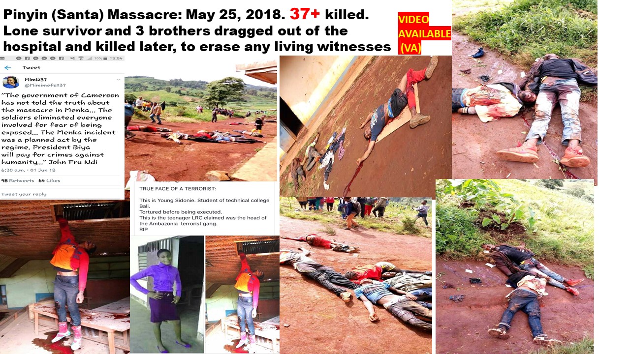 Bakweri Town, Sandpit area in Buea, on Monday, July 30, 2018, experienced one of their greatest horrors in memory, when masked elements of the Rapid Intervention Battalion (BIR) moved into the locality and massacred youths. Some were taken away and executed in neighboring Muea town, leaving the entire community wailing and mourning their children and friends. (read more here). While the casualty here is pale comparable to the other massacres in the ongoing genocide on the minority English-speaking people of British Southern Cameroon, the uniqueness of this Buea massacre was that among the two ( Esambe Roland Ndone and Monono Emmanuel Evakise) later executed at Muea town, was a French-speaking Camerounian. When he identified himself as having originated from French Cameroun, his brothers from the French Cameroun military gave him taxi fare and executed the two British Southern Cameroonians. Thank God he relayed the whereabouts of the two innocent British Southern Cameroonians, whose corpses were retrieved for burial.