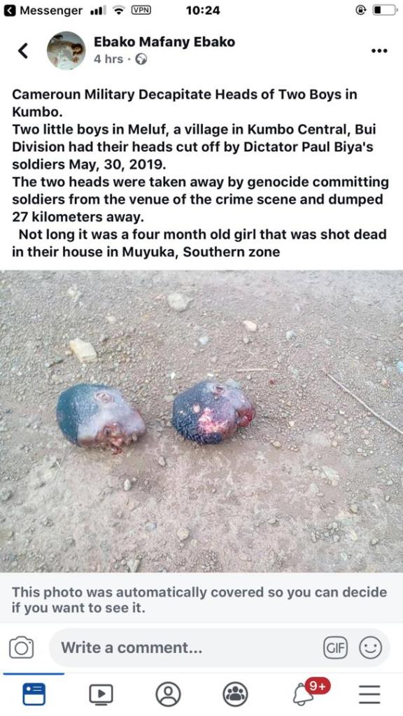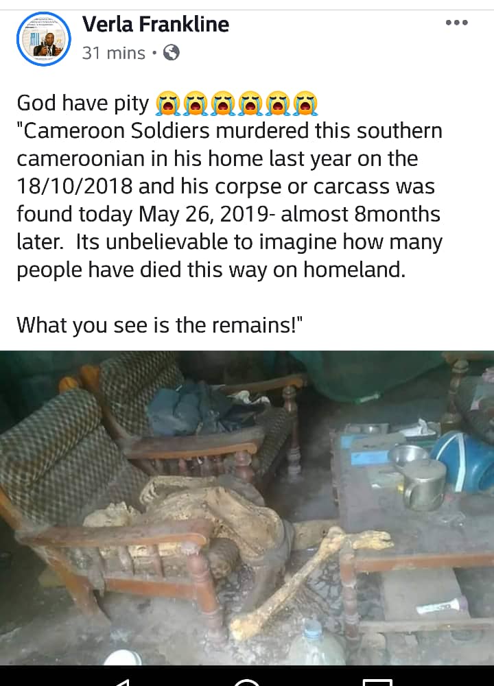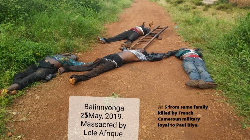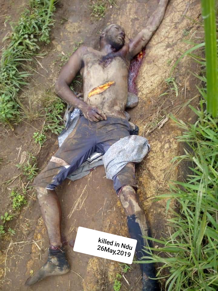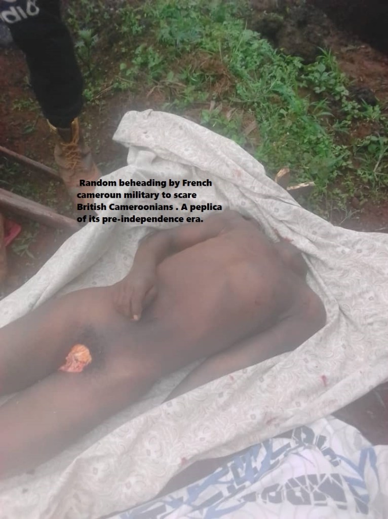 French Cameroun under its two French Speaking governors to the British Southern Cameroon, upped their genocidal game in May 2019 with intense burning, killing and looting. While the French Cameroun’s ceremonial Prime Minister, Mr. Dion Ngute, a British Southern Cameroonian by birth, made some rhetoric overtures to the British Southern Cameroonians, the governors, simultaneously rebuked the overtures with more brutal killings of innocent civilians of the region. Mr. Dion Ngute’s visit to Bamenda was welcome with two extra-judicial killings less than two kilometers from his hotel room. Two innocent civilians were pulled out of a transport bus and shot point blank (click here). The next day on a visit to Bambili, about 8 miles away, a woman and her baby were slained by the same military. Cries could be heard as the PM drove by alongside a heavy military convoy. His visit to the Southern Zone was marked by similar killings by the French-speaking governor, Mr. Okalia Bilai, who had earlier referred to the prime minister’s kindred as dogs. The most cruel of the month’s killing was that of a 4-month-old sleeping baby, whose skull was shattered on a sofa in their sitting room in Muyuka. To diffuse the PR kerfuffle, the regime sacrificed a French Cameroun citizen in Bamenda. The scheme to tag the Ambazonian self-defense boys with the beheading failed woefully as the mastermind’s French accent betrayed them. Below are the images of about 70 of the more than a hundred killed by French Cameroun Soldiers in May 2019. The same scenario happened last year when more than 39 innocent British Southern Cameroonians were murdered in Santa, Bafut, Balinyonga, Mamfe in the same month. The world stands idly by while human life is wasted in the British Southern Cameroons, using the Rwanda 1994 script.