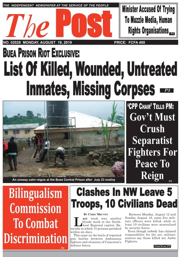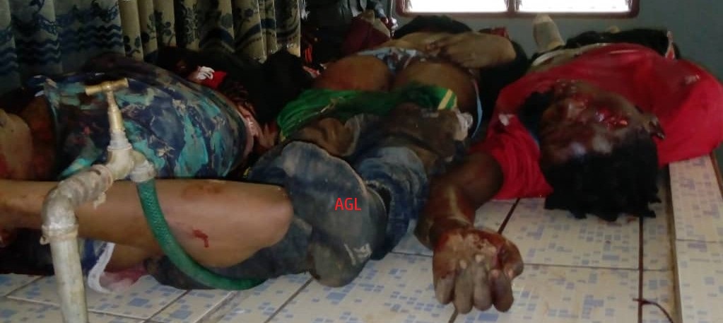 This eye witness narrates the ordeal in Muyuka, when Okalia Bilai’s Bulubeti Militia, invaded the peaceful area: “Shockingly, this is Muyuka 4/08/2019, precisely Makanga. You won’t believe that being on Sunday in a peaceful atmosphere after churches have closed people in their various quarters, occasions going on, funerals and normal businesses, at around 8 pm military men just storm the quarter with armor vehicles, dangerous war equipment, surprised people with constant saturating gunshots such that people confused what was happening, as the people scattered and ran to either directions, many unfortunately fell into the hands of military who carried them to GBHS front gate and shot them all death. Some happen to be missing only to discovered they were carried to another location after their station called Meanger and killed there. From many points of view they were killed in that way so that it won’t be like mass massacre. Among those in the photo are Mr Abraham with Jean and tennis a palm wine tapper, Mr Joe a road side petrol seller with black trousers, a man called Pa Faith a chemist seller in the middle, a bike rider whose name am still to know. All were at their business centers when they were caught and taken to murder. Heart breaking, Pa Faith is supposed to have his marriage ceremony on the coming Saturday at Catholic Church Makanga. God sees this, nature sees this, the world sees this; what Cameroun government prefer to do southern Cameroon for crime they haven’t committed except seeking for independence from the brutal colonial rule over them. I don’t know if Paul Biya is now the world president or God of gods, pharaoh, Herod and Nebuchadnezzar …….. “