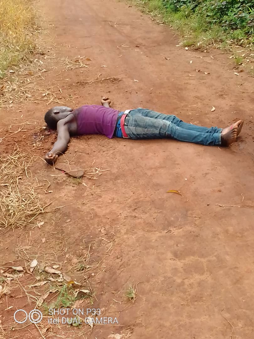Some of the bullets were buried almost half a meter deep, where Amahbo Cyprain, about 19 was shot in Njimbee, Bafut, by French Cameroun Soldiers/militias. “We all were in the kitchen and the soldiers after prolonged shooting in the village and burning of the house of our neighbor, entered my house. We were all in panic, They pulled out my son and asked us to follow them. They then shot him in front of us, and ensured he bled to death before they left. There was no Restoration boys in our quarter. There was no exchange of fire. My son was a tire repair man in Bambui. He is an innocent child. Why they executed him like that, we cannot explain. To watch your own son bleed and die in front of you is….”. The traumatized parents of Amahbo Cyprain, could not hold back pain and tears as they told mourners last 16 November, 2019, at the interment of their son.