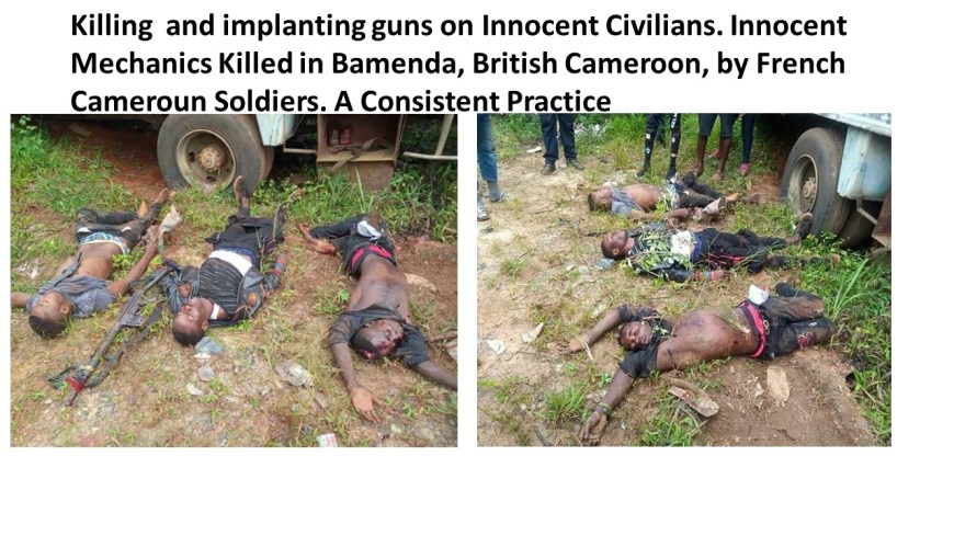 Another deathly month in the ongoing genocide in British Southern Cameroon by French Cameroun Bulubeti Militias. As usual, they kill with pride and arrogance, wrecking havoc in the process. They try to justify their actions by placing Dane guns on the innocent victims. Where there are no Dane guns, they strip them naked, looking for any red color. Their creed is, “Thou shall kill any British Cameroonian you wish”. Just like in the case of Hitler who was forcefully removed, the global community continues to pamper the dictator. The values they used to pride themselves on like Human Rights, Justice, Democracy and Human Dignity are shelved.