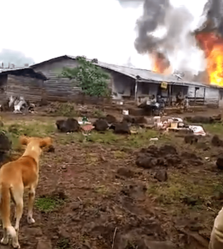 “Maumu, Maumu” a weeping voice reverberates. “Cameroun Military invaded Maumu and removed them from their homes and set the homes on fire”. The voice narrates in the video, as a baffled dog looks on, as his “kindred” ferry stuff away from the flames. British Cameroonians are called dogs (chien) by the French Cameroun’s Appointed Governor to the territory, Mr. Okalia Bilai, who has now killed more than 8000 British Cameroonians, since he started calling them dogs. Last month, more than 108 were killed by the governor, setting some ablaze in their homes (Click here).