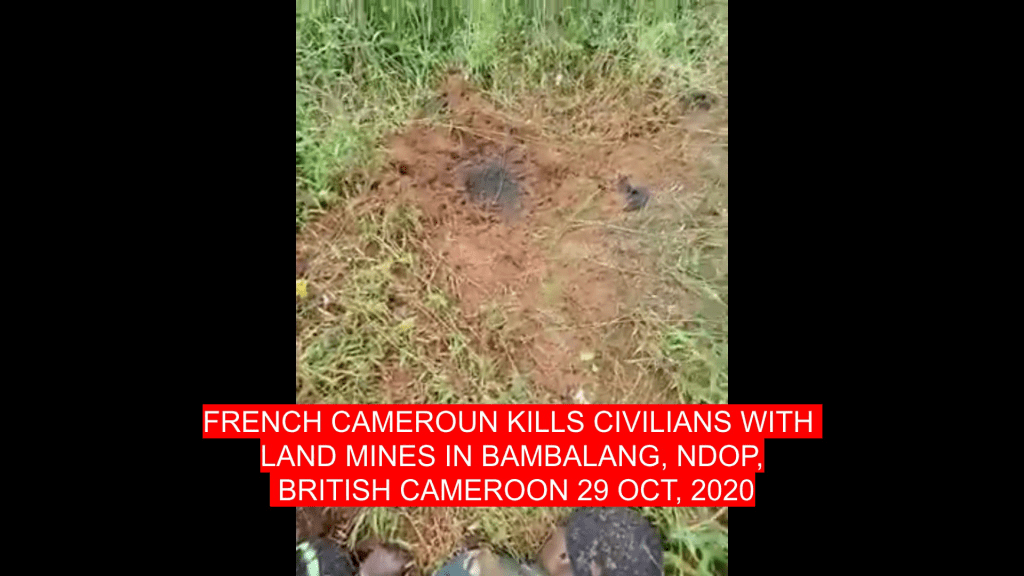 At Least 5 killed by French Cameroun Land mines in Ndop: Barely five days after the murder of more than 9 school children in Kumba, and the outcry, French Cameroun Colonial soldiers upped their killings, this time in Ndop with land mines which violates the UN Treaty –Ottawa Treaty, the Anti-Personnel Mine Ban Convention, or often simply the Mine Ban Treaty. The Convention was concluded by the Diplomatic Conference on an International Total Ban on Anti-Personnel Land Mines at Oslo on 18 September 1997. The video shared online on 29 October, 2020, shows a dugout hole from the ground where the mines were planted in Ndop in the ongoing genocide in British Cameroons. Bodies of more than four innocent civilians are strewn a few meters from the epicenter of the mine (Click here for details with video)
