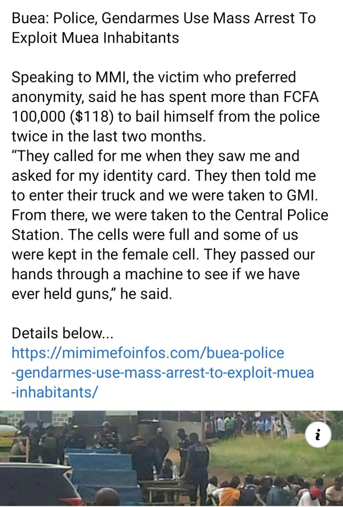 15 civilians killed at Bopo-bakundu villag, Ebanga-bakundumbonge LGA . Unaccountable numbers were arrested and ferried to Kumba.