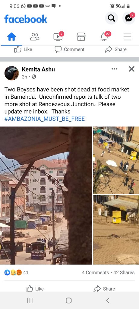 as usual, the population that came out to voice their frustrations with the murder of the 7-year-old Tataw Brenda, were not safe. The French Cameroun military later on executed more innocent civilians. In addition to one corpse killed around the street of Longla, the next day saw abandoned corpses at certain streets of the City. Eye witnesses identified an abandoned corpse around Mile 3 Nkwen, killed by the French Cameroun military. Another person was killed and dumped at the Nanga Junction area as well. More corpses were also identified at the Bamenda food market, killed by the same colonial military on the 15 November, 2021. Since the start of the conflict in 2016, more than 32000 people have been killed, with more than 460 villages burnt by the French Cameroun colonial soldiers. Below are the image of the abandoned corpses at the Bamenda Food Market.