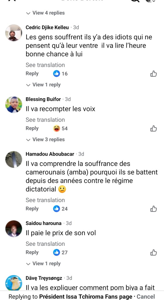 Come to think of George Bush and the Republican party stealing Obama’s 2008, to continue with the Iraq war that had become unpopular to the American people. On October 12 2025, the Cameroun people overwhelmingly voted out the 94-old Paul Biya and his CPDM party in favor of Issa Tchirouma. As usual, the frail president and tribesmen stole the election. They then went after the winner forcing him into exile. Other opposition leaders were locked up and killed in jail such as Anicet Ekane.. (Below are some of the images of the killings in Mforya, bafut).